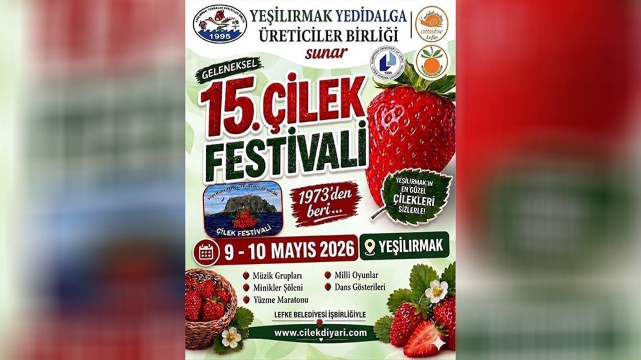 Yeşilırmak-Yedidalga Üreticiler Birliği tarafından düzenlenecek 15'inci Geleneksel Çilek Festivali 9-10 Mayıs tarihlerinde yapılacak.