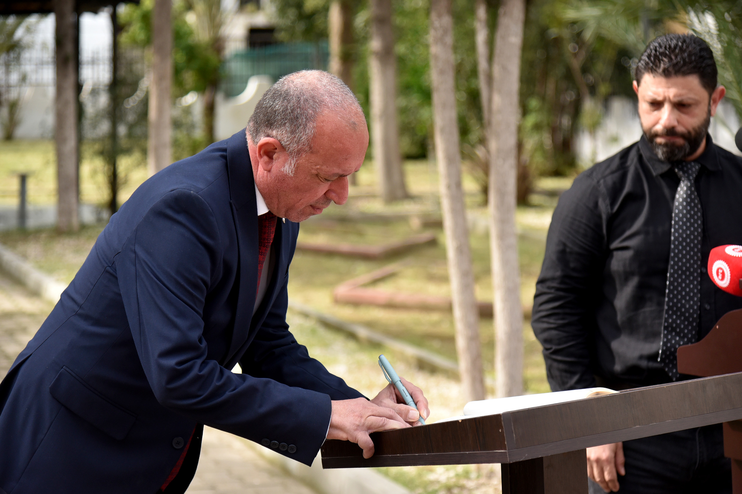 Lefkoşa Kaymakamı Cemal Kuyucu'nun, Şehitlik Özel Defteri'ni imzaladığı törende, Şehit Aileleri ve Malul Gaziler Derneği Girne Bölge Başkanı Ersoy Talu ve 1'inci Piyade Alay Komutanlığı'ndan Piyade Teğmen Ahmet Cin günün anlam ve önemini belirten konuşmaları yaptı.