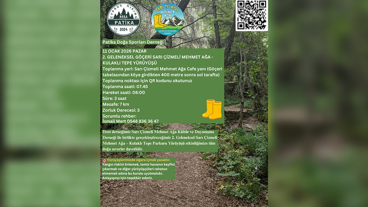 Patika Doğa Sporları Derneği Başkanı Erdoğan Işık yaptığı yazılı açıklamada, 11 Ocak Pazar günü yapılacak yürüyüşün, doğa sevgisi, yerel kültürün yaşatılması, dayanışma ve sağlıklı yaşam temaları çerçevesinde planlandığını ve her seviyeden doğa severin katılımına açık olduğunu belirtti.