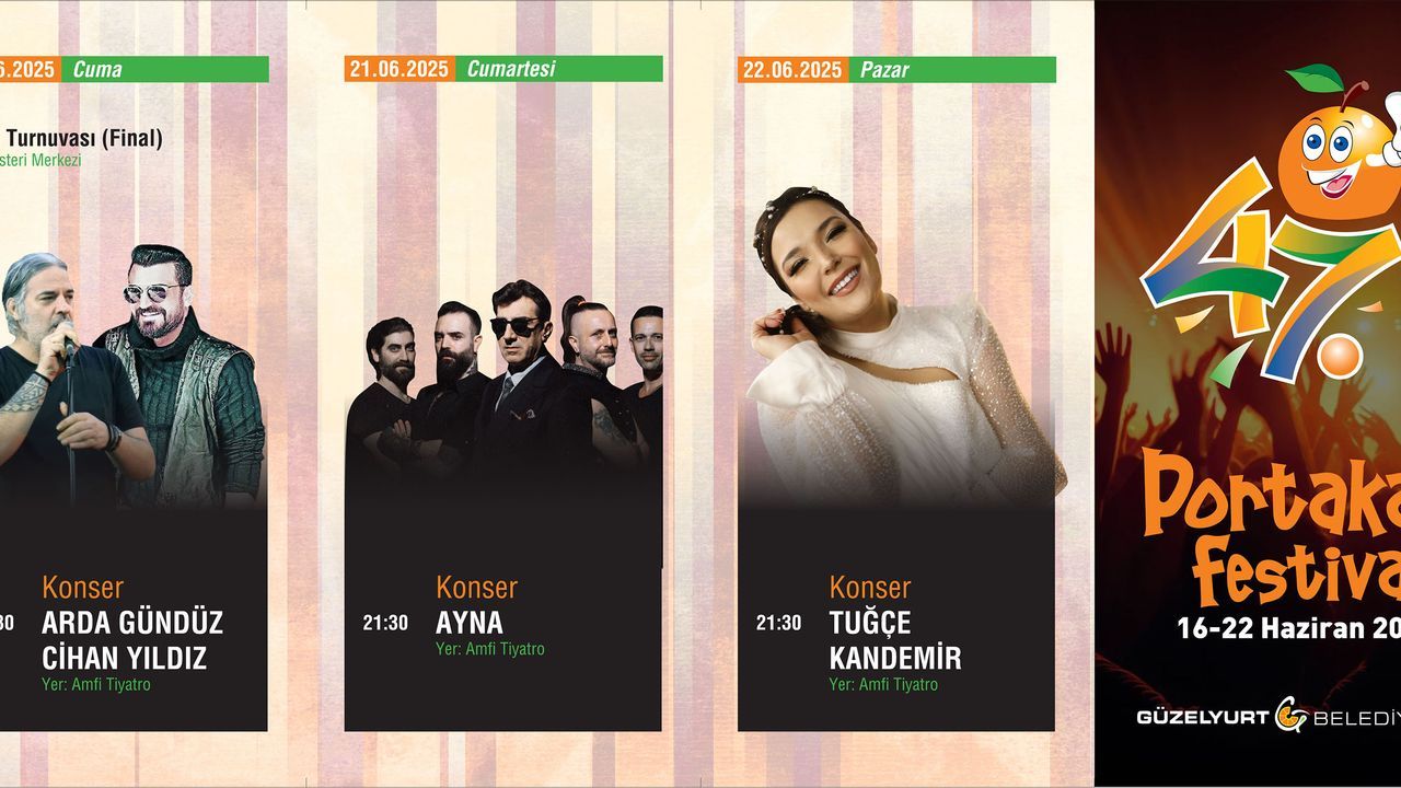 16-22 Haziran tarihleri arasında birçok etkinliğe ev sahipliği yapacak olan 47. Güzelyurt Portakal Festivali’nde Alisher Nazirov, Emre Fel, Ayna, Tuğçe Kandemir, Arda Gündüz, Cihan Yıldız, Grup Otantik ayrıca yiyecek ve içecek stantlarının ücretsiz olacağı çocuk şenliği, tavla turnuvası ve halı saha maçları yer alacak.