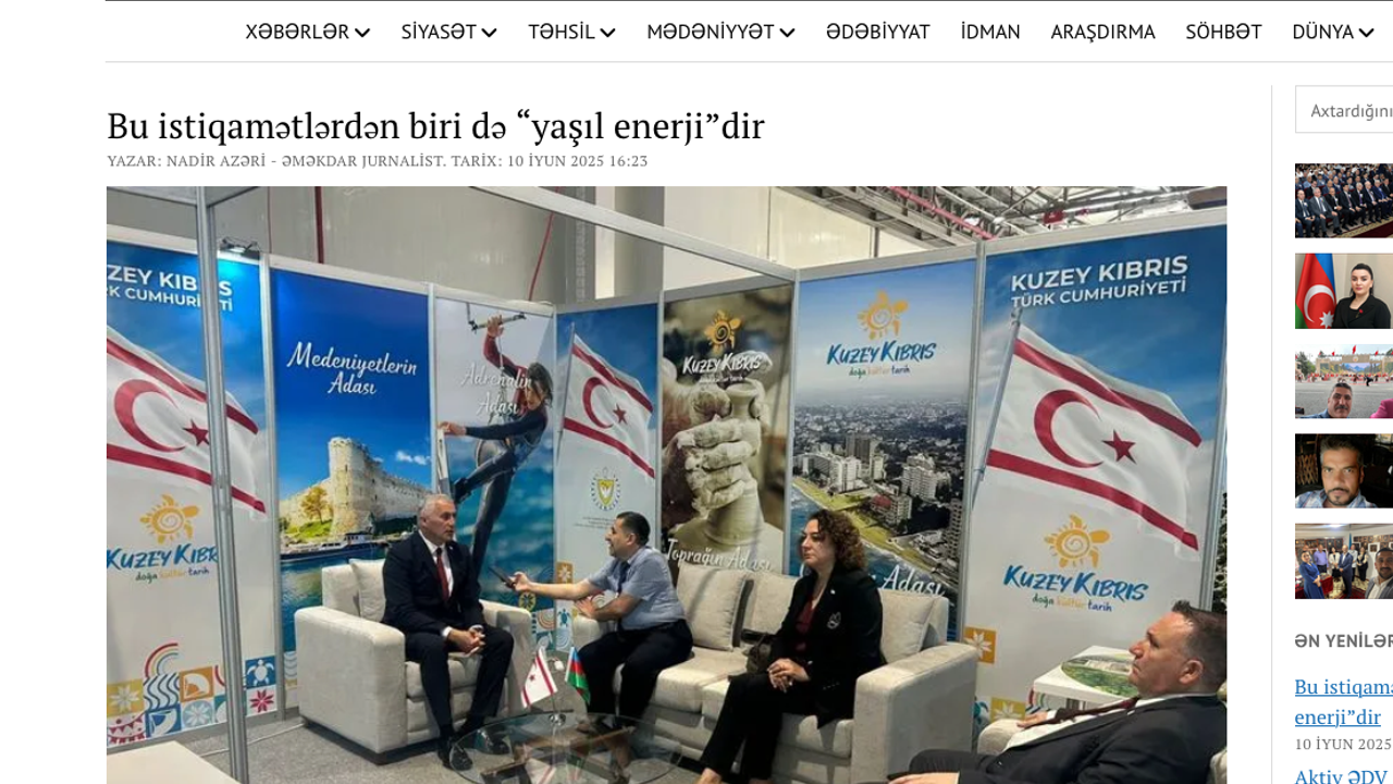 Amcaoğlu, "Türkiye halihazırda toplam enerji üretiminin yüzde 55'inden fazlasını yenilenebilir enerjiden sağlıyor. Bahsettiğim gibi kardeş Azerbaycan'ın bu alandaki başarılarını da yakından takip ediyoruz. KKTC olarak 2030 yılına kadar tamamen ‘yeşil enerji’ye dayalı bir ada modeli yaratmayı amaçlıyoruz. Türkiye ve Azerbaycan'ın bu yöndeki deneyimi ve desteği bizim için önemli. Bu destekten güç alarak bu alanda başarıya ulaşacağımıza inanıyoruz” dedi.