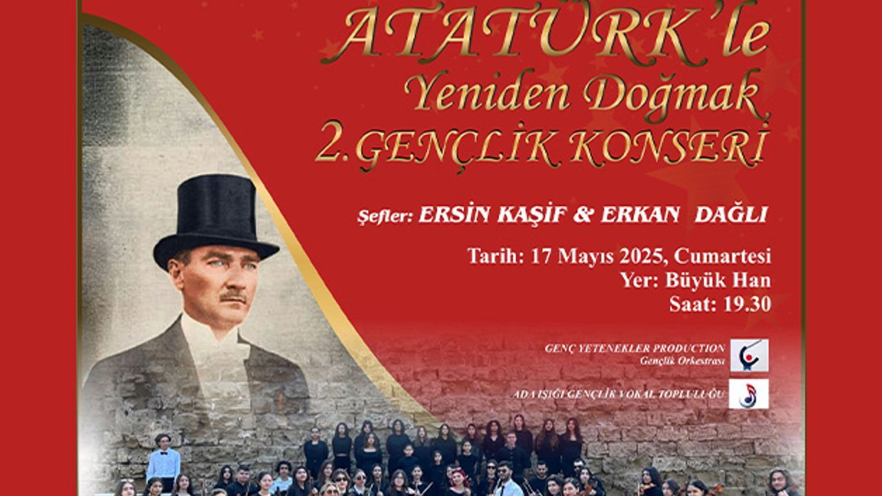 Kültür Dairesi, 19 Mayıs Atatürk’ü Anma Gençlik ve Spor Bayramı nedeniyle cumartesi akşamı Büyük Han’da “Atatürk’le Yeniden Doğmak 2. Gençlik Konseri” düzenliyor.