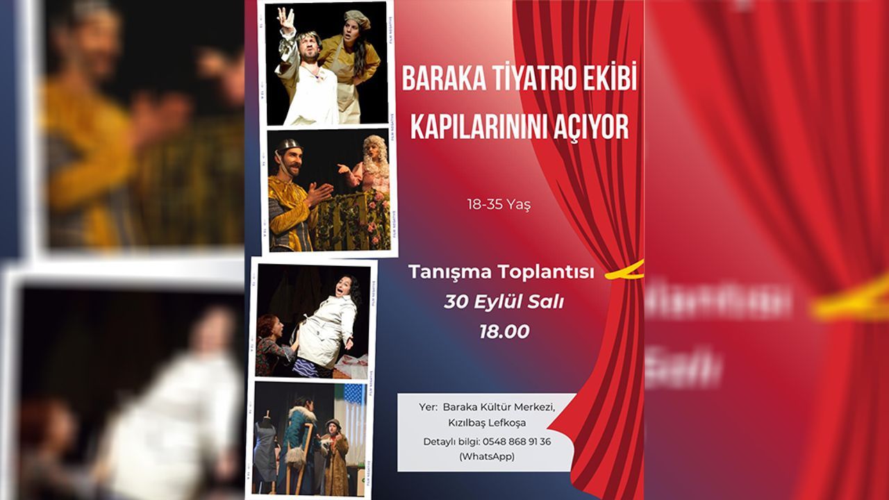 Baraka Kültür Merkezi çatısı altında faaliyet gösteren Baraka tiyatro ekibi, 18-35 yaş arası genç yetişkinlerden oluşacak yeni bir ekip kuracağını açıkladı.