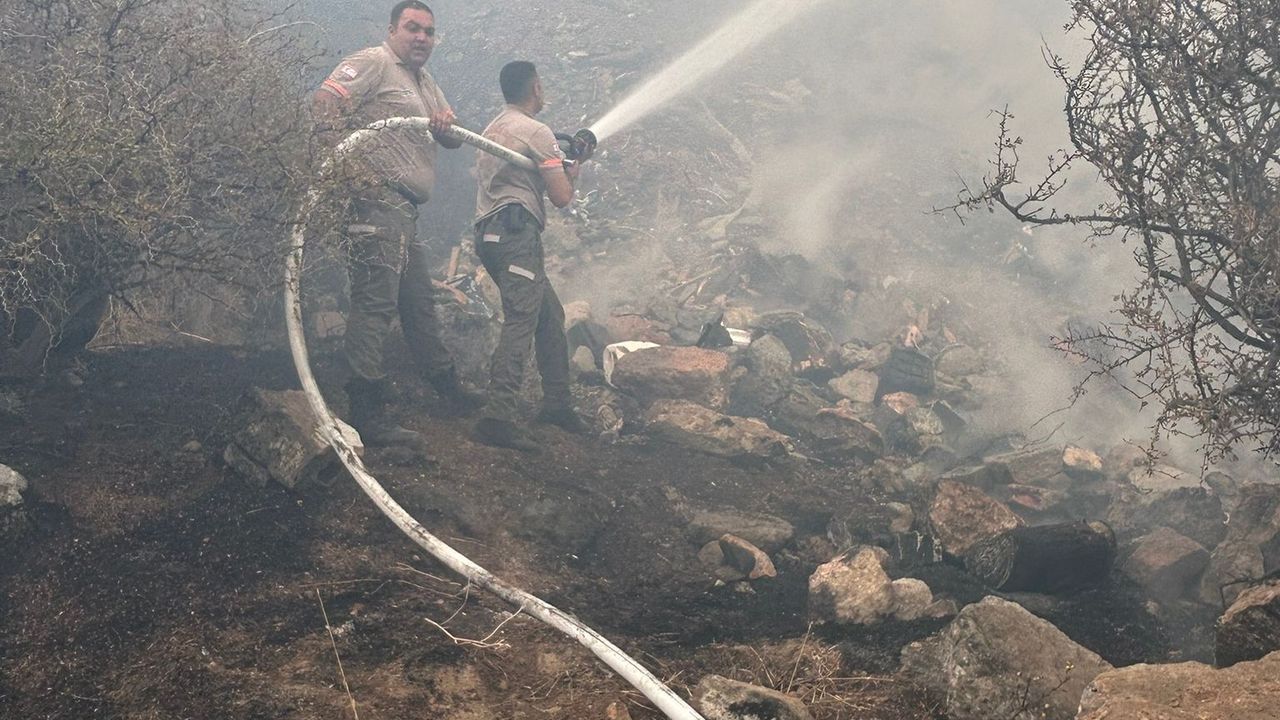 Yangın, ekiplerin müdahalesiyle kontrol altına alınırken, soğutma ve iş makineleri ile de topraklama çalışmaları devam ediyor.