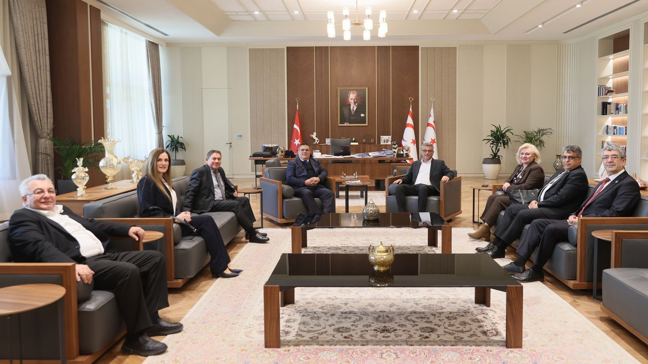 Cumhurbaşkanı Tufan Erhürman, Yükseköğretim Planlama, Denetleme, Akreditasyon ve Koordinasyon Kurulu (YÖDAK) Başkanı Aykut Hocanın ve yönetim kurulu üyelerini kabul etti.