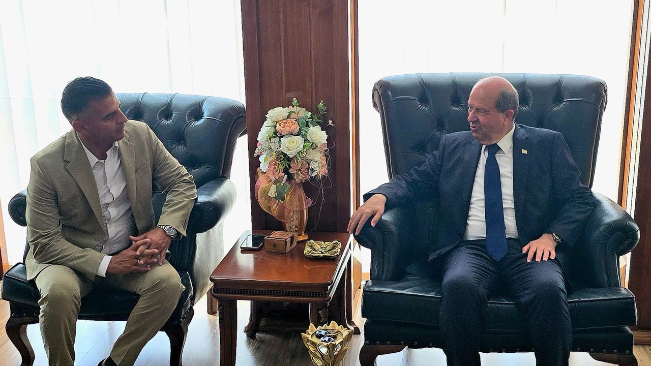 Cumhurbaşkanı Ersin Tatar’a ziyarette, Cumhurbaşkanı İletişim ve Basın Danışmanı Muslu Akgüney, Cumhurbaşkanı Özel Danışmanı Gökhan Güler ve Cumhurbaşkanı Siyasi İşler Danışmanı Ramazan Karal eşlik etti.