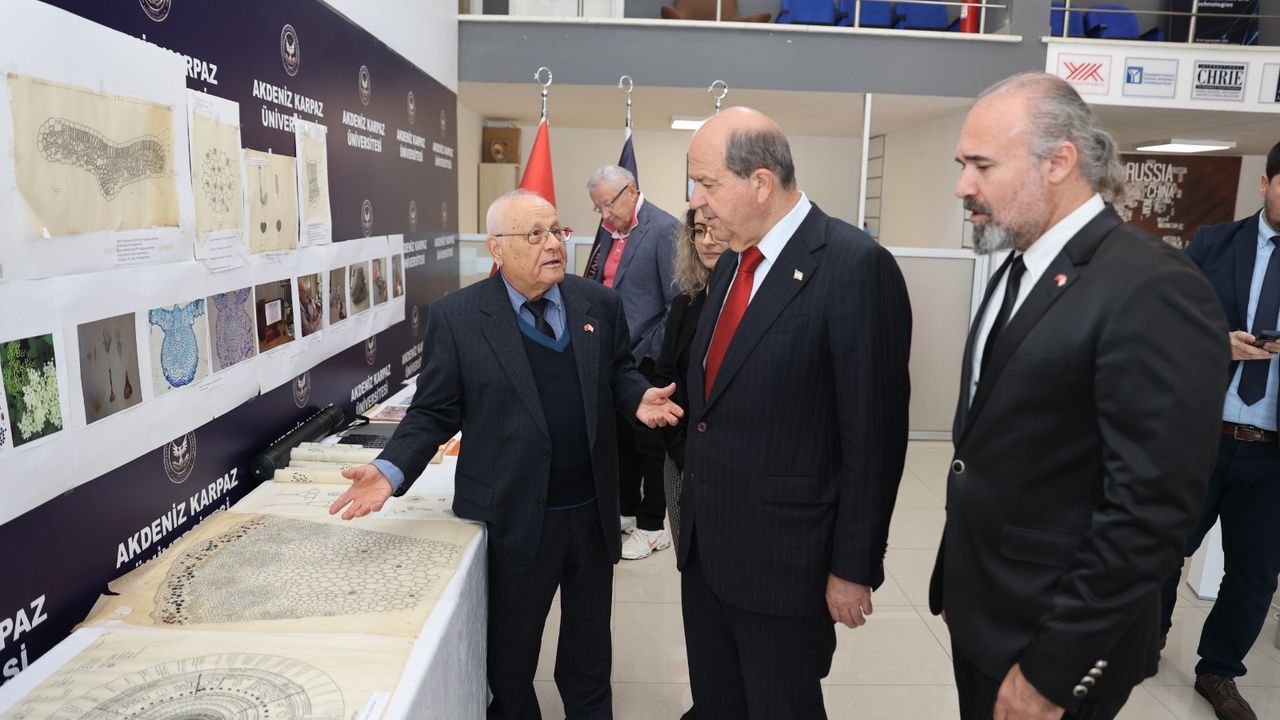 Cumhurbaşkanlığı’ndan yapılan açıklamaya göre, Cumhurbaşkanı Ersin Tatar, Akdeniz Karpaz Üniversitesi’nde yer alan sergiden dolayı AKÜN Rektörü Prof. Dr. Teoman İsmail Kesercioğlu'nu tebrik ederek, eserler hakkında bilgi aldı.