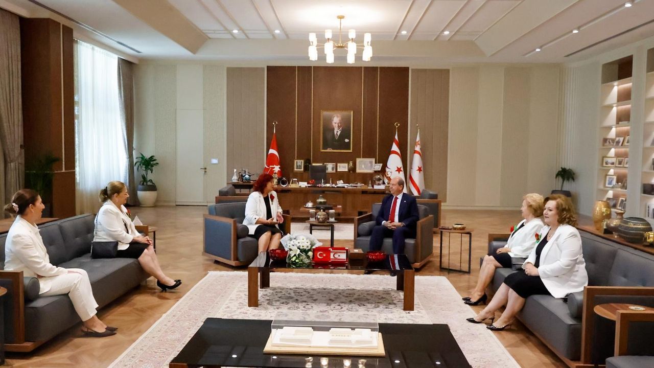 Cumhurbaşkanı Ersin Tatar, Kıbrıs Türk Kadınlar Birliği Genel Başkanı Halide Tunceri ve yönetim kurulu üyelerini kabul ederek, görüştü.