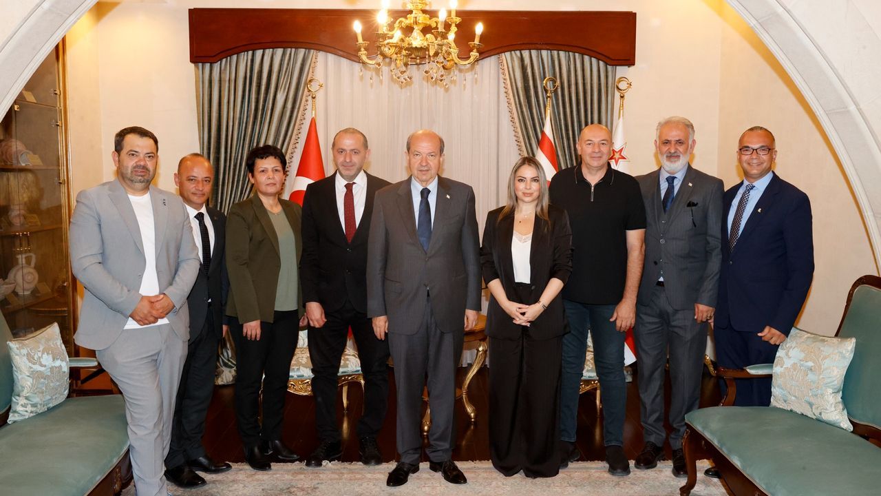 Cumhurbaşkanı Tatar, Burhan Canbaz başkanlığındaki Dış Basın Birliği Yönetim Kurulu üyelerini kabul etti.