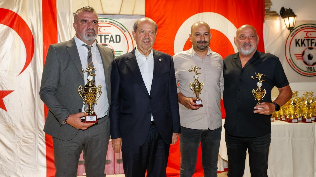 Cumhurbaşkanı Ersin Tatar, Kuzey Kıbrıs Türk Futbol Antrenörleri Derneği (KKTFAD) tarafından düzenlenen ödül törenine katıldı.