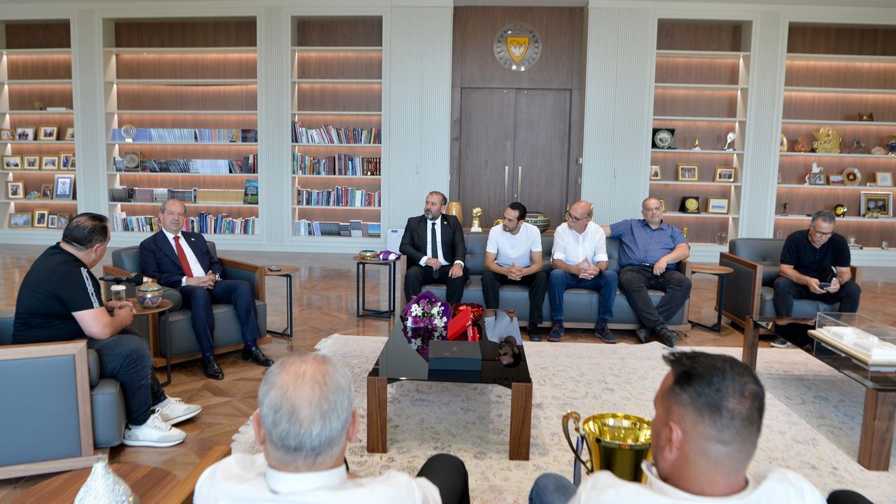 Cumhurbaşkanı Ersin Tatar, Lefke Türk Spor Kulübü Başkanı Adnan Doğruyol ve yönetim kurulu üyelerini kabul ederek, kazanılan şampiyonluktan dolayı kulübü tebrik etti.