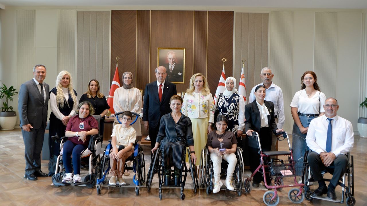 Cumhurbaşkanı Ersin Tatar ve eşi Sibel Tatar, 2019 Rusya Kıtalararası ve Dünya Kupası Şampiyonu, Tekerlekli Sandalye Dans Milli Takımı sporcusu Yeliz Güllü ve beraberindeki heyetle bir araya geldi.