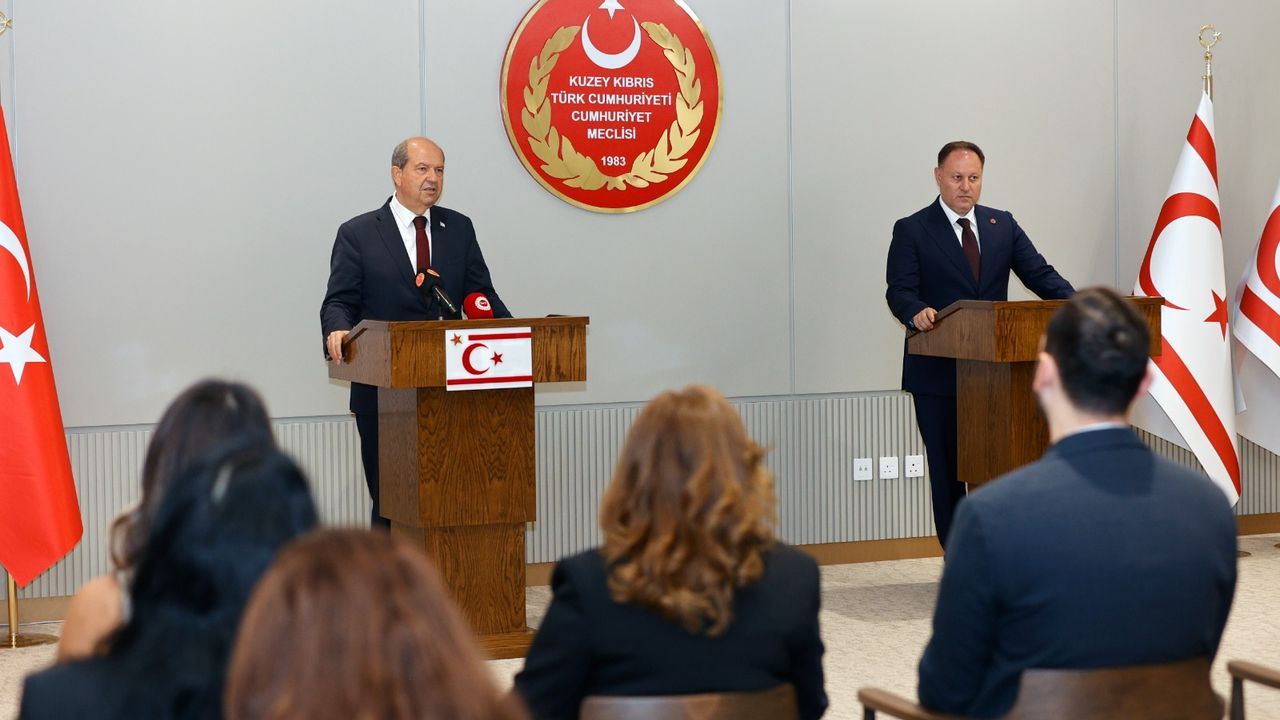 Cumhurbaşkanı Ersin Tatar ile Meclis Başkanı Ziya Öztürkler, Cumhuriyet Meclisi'nin yeni yasama yılı açılış töreninin ardından Cumhuriyet Meclisi'nde açıklama yaptı.