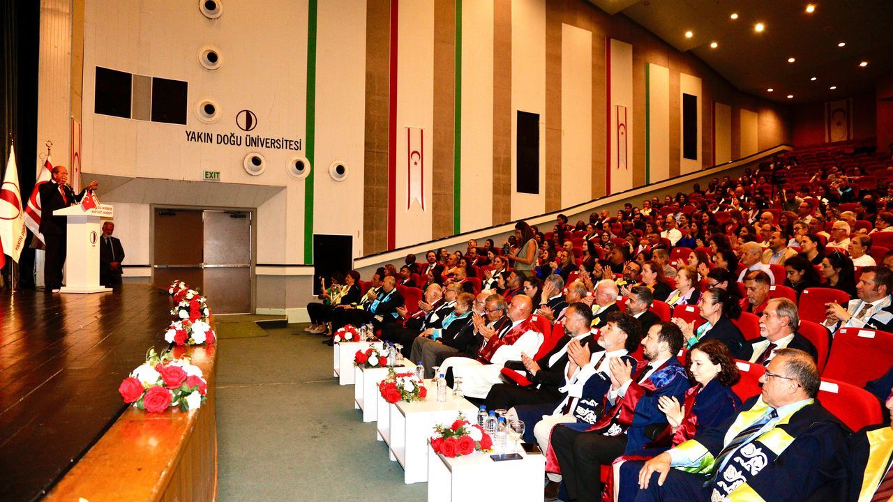 Cumhurbaşkanı Tatar, KKTC'nin dünyaya tanıtılmasında Yakın Doğu Üniversitesi'nin çok çaba sarf ettiğini vurgulayarak, üniversitenin önde giden, ileriye bakan bir eğitim kurumu olduğunu kaydetti.