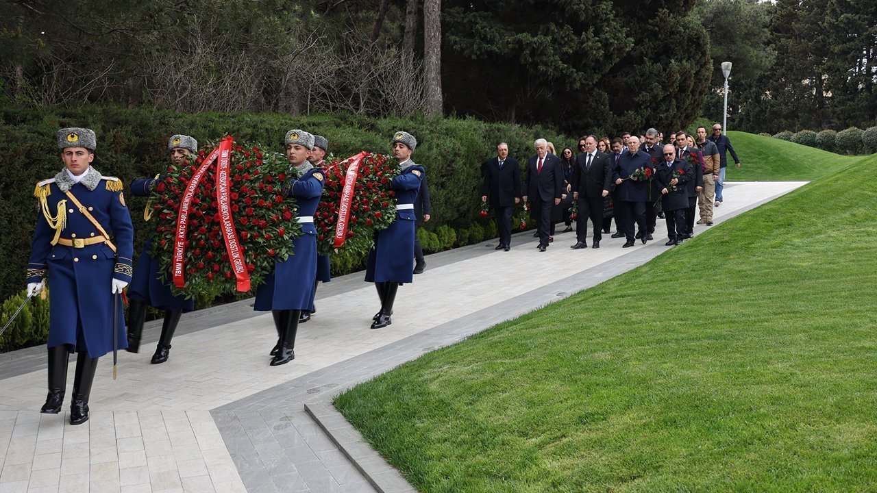 Meclisten verilen bilgiye göre, heyet ilk olarak Azerbaycan halkının İkinci Karabağ Savaşı'ndaki zaferi ve şehitleri anmak için inşa edilen Zafer Anıtı'nı ziyaret ederek anıta çelenk koydu.