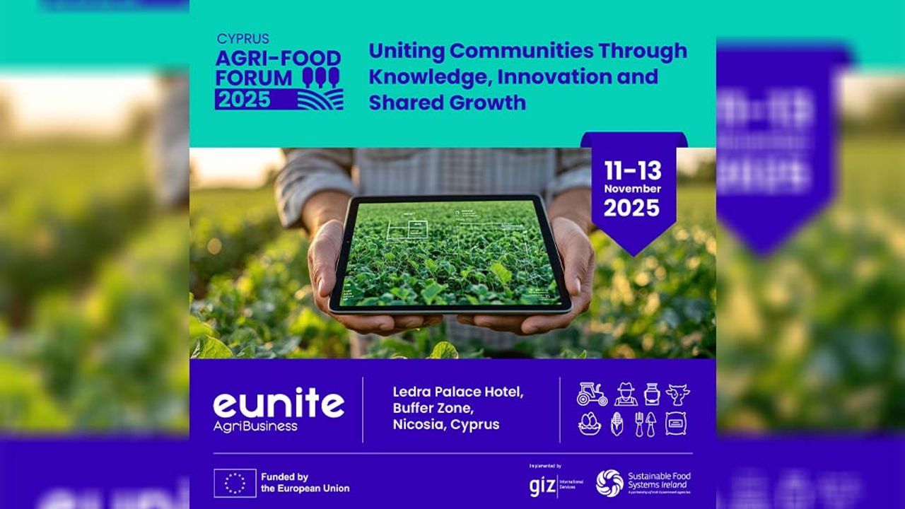 'Cyprus Agri-Food Forum 2025: Bilgi, İnovasyon ve Ortak Büyümeyle Toplulukları Birleştirme' etkinliği 11-13 Kasım tarihleri arasında Ledra Palace Otel'de yapılacak.