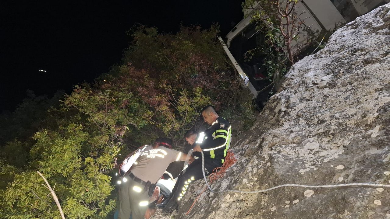 Araç sürücüsü uçurumdan İtfaiye, Polis ve Sivil Savunma ekipleri tarafından yaralı olarak kurtarıldı.