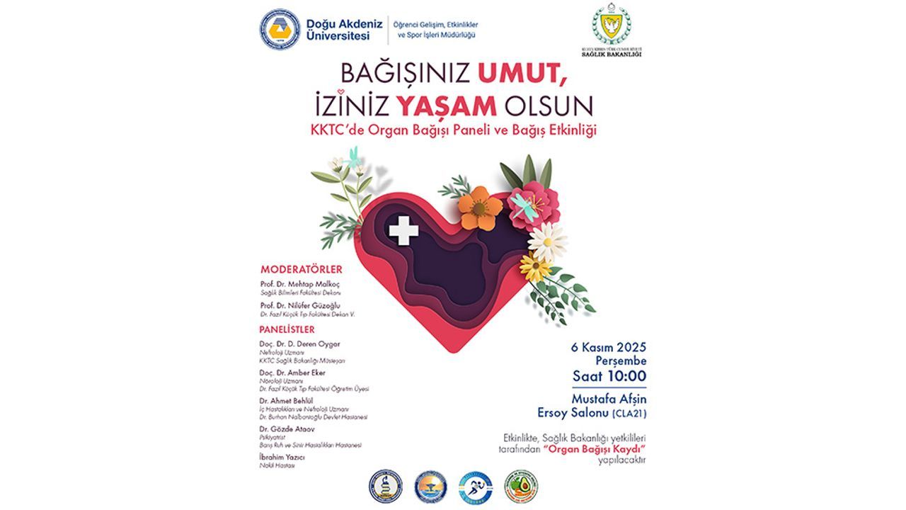 Doğu Akdeniz Üniversitesi'nde (DAÜ), Organ ve Doku Bağışı Haftası kapsamında 'KKTC'de Organ Bağışı Paneli ve Bağış Etkinliği' düzenlenecek.