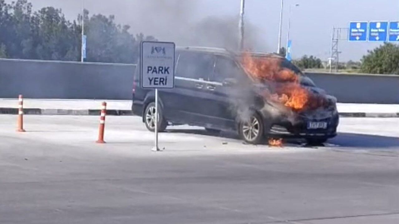 Ercan Havaalanı'nın turizm otobüs parkındaki bir araçta bu sabah kısa devre sonucu yangın çıktı.