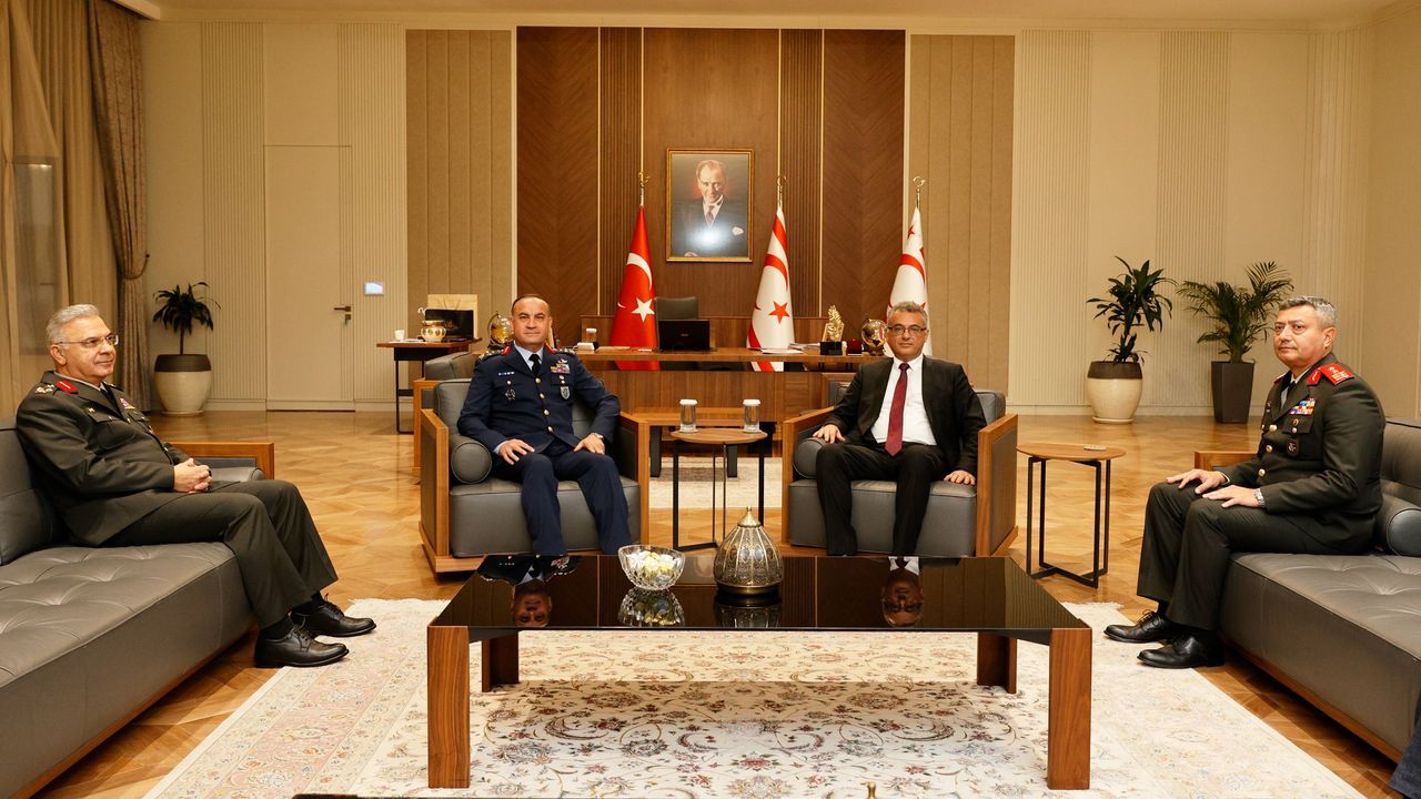 Cumhurbaşkanı Tufan Erhürman, Milli Savunma Bakanlığı'nı (MSB) temsilen 15 Kasım Cumhuriyet Bayramı kutlamaları için KKTC'ye gelen Hv. Org. Rafet Dalkıran'ı kabul ederek görüştü.