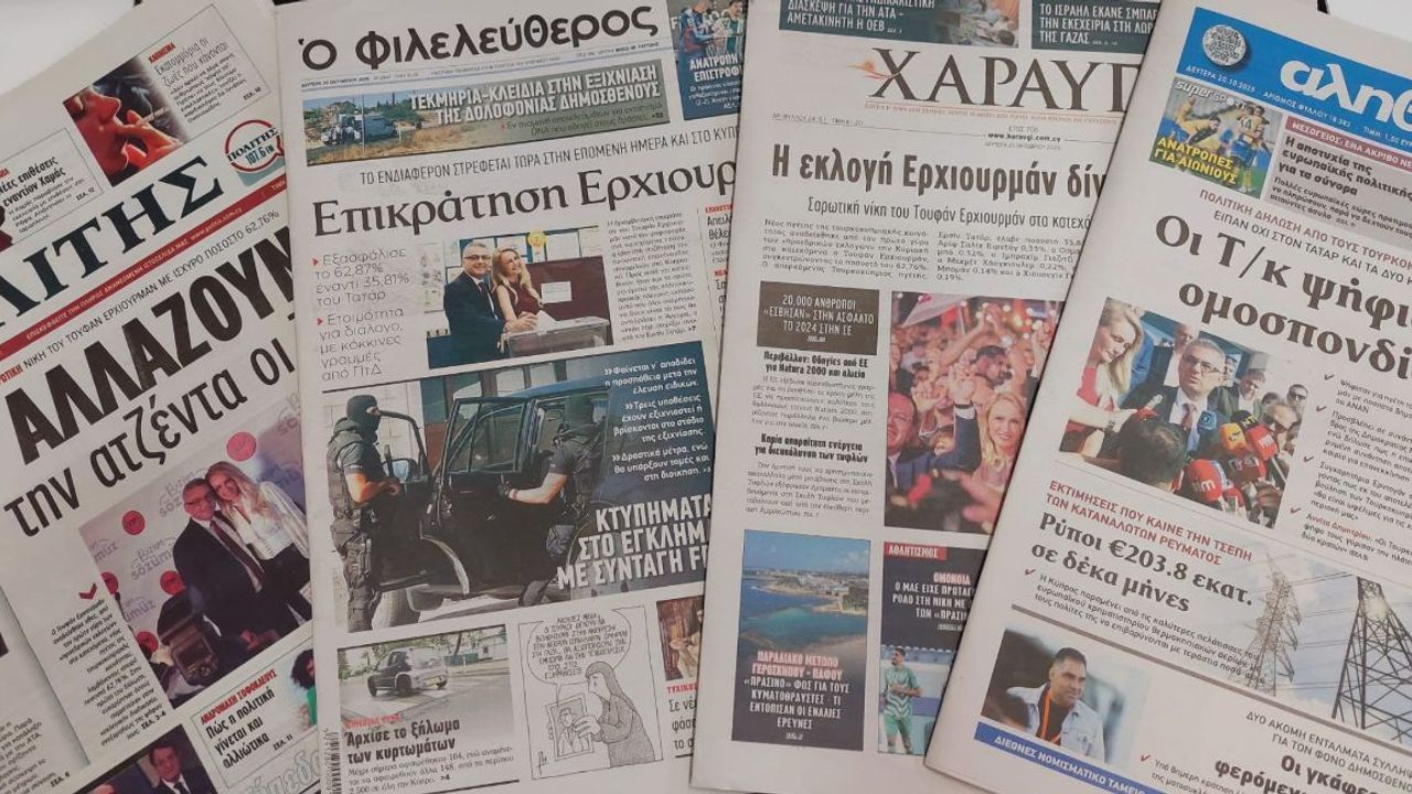 KKTC'de dün gerçekleştirilen seçimlerde Cumhuriyetçi Türk Partisi (CTP) adayı Tufan Erhürman'ın cumhurbaşkanı seçilmesi, bugünkü Rum gazetelerinde fotoğraflı şekilde geniş yer buldu.