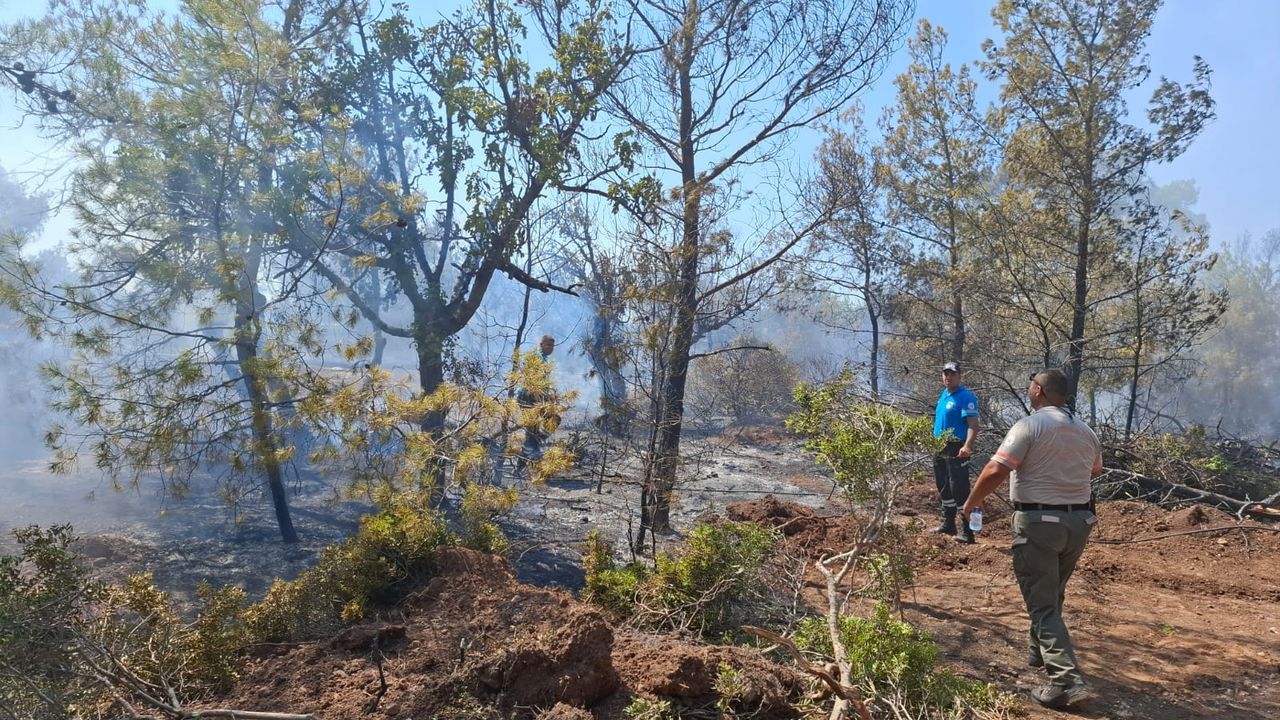 Esentepe-Karaağaç arasındaki yangında 10 dönümlük alanda bulunan çam ve harnup ağaçları ile maki bitki örtüsü yandı