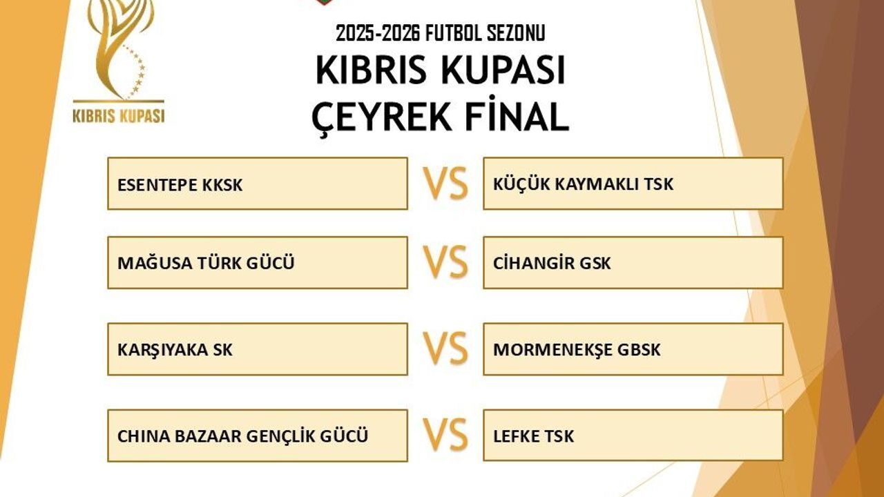 Kıbrıs Kupası'nda çeyrek final kuraları Kıbrıs Türk Futbol Federasyonu Ahmed Sami Topcan Toplantı Salonu'nda yapılan kura çekimi ile belirlenmiş oldu.