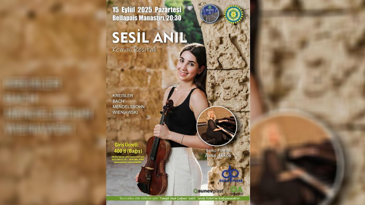 Genç sanatçı Sesil Anıl ilk solo keman resitalini 15 Eylül akşamı saat 20.30 ta Bellapais Manastırında verecek. Sesil Anıl resitaline katılanlar, Bach, Mendelssohn, Kreisler ve Wieniawski gibi bestcilerin eserlerini dinleme şansı elde edecek.