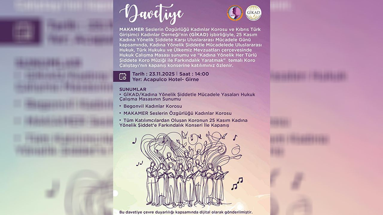 Kıbrıs Türk Girişimci Kadınlar Derneği (GİKAD) ile Mağusa Kadın Merkezi Derneği (MAKAMER), 25 Kasım Kadına Yönelik Şiddete Karşı Uluslararası Mücadele Günü kapsamında ortak etkinlik düzenliyor.