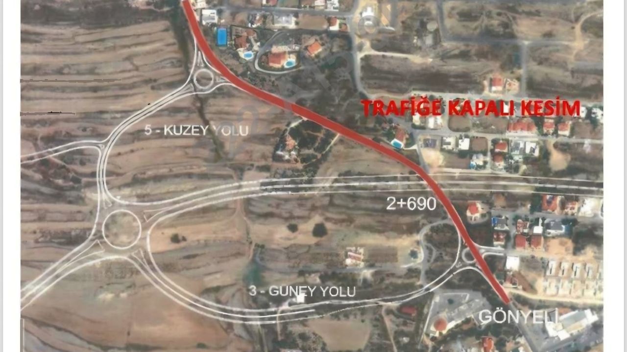 “Lefkoşa Kuzey Çevre yolu köprülü kavşak ile Alayköy bağlantısı yol çalışmaları kapsamında Gönyeli-Boğaz Yolu (Eski Gönyeli Yolu) krokide gösterilen kesimi trafiğe tamamen kapatılacak olup, geliş ve gidiş olmak üzere her iki yönde ekli krokide gösterilen kesimde transit geçişler yapılamayacaktır. Çalışmalar bugün saat 18:00 de başlayıp, pazartesi sabah 06:00’da tamamlanacaktır. Bu güzergâhı kullanacak sürücülerin can ve mal güvenliği açısından dikkatli ve yavaş seyretmeleri, trafik işaret ve işaretçilerine uymaları önemle rica olunur”