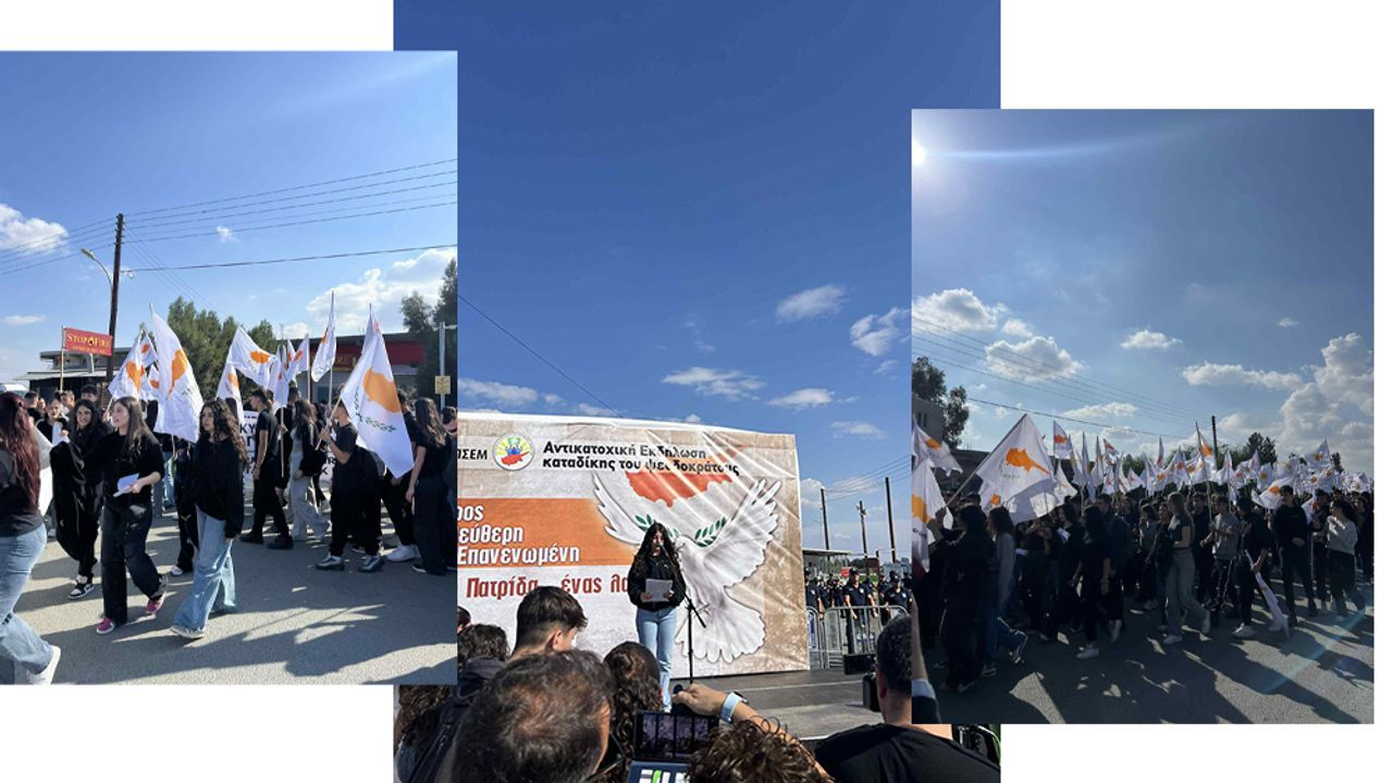 Güney Kıbrıs'taki çeşitli öğrenci hareketlerine mensup öğrenciler, bugün yürüyüş düzenleyerek KKTC'nin ilanının 42'inci yılını kınadı.