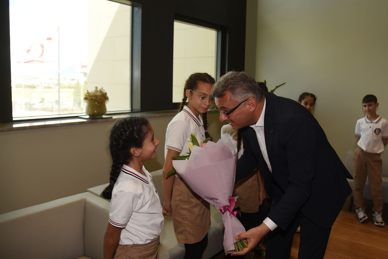 Erhürman, öğrencilerle tek tek selamlaşarak, sohbet etti. Okullarındaki eksiklikleri Cumhurbaşkanına aktaran öğrenciler, park ve kapalı spor salonu taleplerini dile getirdi.