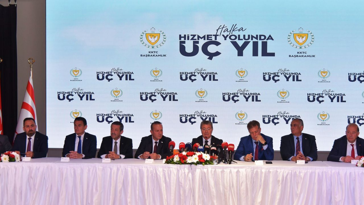 Başbakan Ünal Üstel, hükümetin üç yıl içinde KKTC’ye kazandırdığı icraatları paylaştığı “Halka Hizmet Yolunda Üç Yıl” başlıklı basın toplantısında konuşma yaptı.