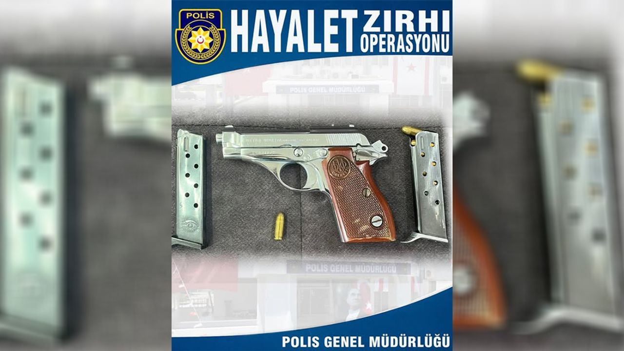 Polis Basın Subaylığı’ndan yapılan açıklamada, dün saat 10.40 sıralarında, Demirhan'da Lefkoşa Polis Müdürlüğü’ne bağlı Cürümleri Önleme Şube Amirliği Ekipleri tarafından gerçekleştirilen operasyonda, O.G.(E-32)'nin tasarrufunda bir adet 7.65 mm çapında tabanca ile tabancaya ait iki adet şarjör ve 7.65 mm çapında 7 adet canlı mermi bulunarak emare alındı. O.G., tutuklandı.