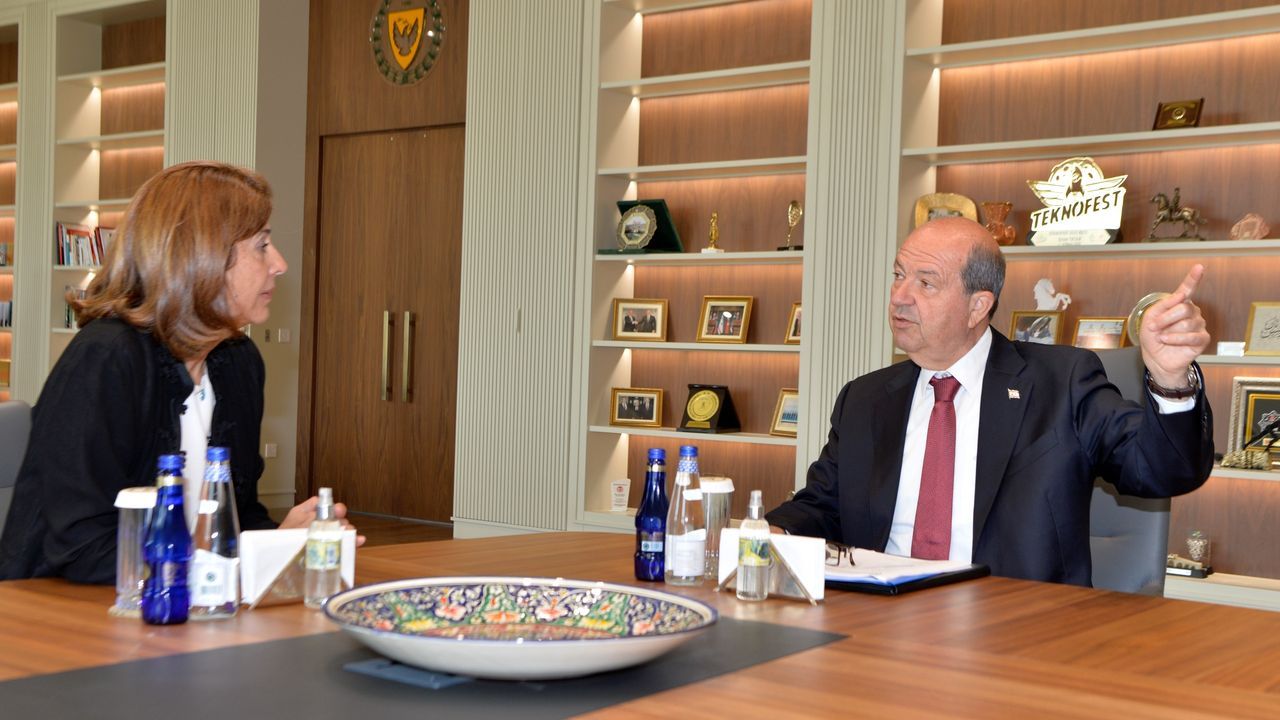 Cumhurbaşkanı Ersin Tatar’ın Birleşmiş Milletler (BM) Genel Sekreteri Antonio Guterres’in Kıbrıs Kişisel Temsilcisi Maria Angela Holguín Cuellar ile baş başa görüşmesi tamamlandı.