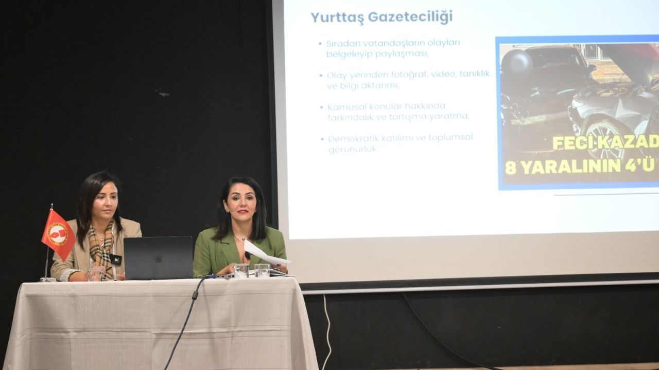 Etkinlikte, konuşmacılar Huri Yontucu ve Canan Onurer, görseller eşliğindeki sunumda dijital medyada yanlış bilginin üretimi, yayılma biçimleri ve manipülasyon teknikleri üzerine detaylar paylaştı.