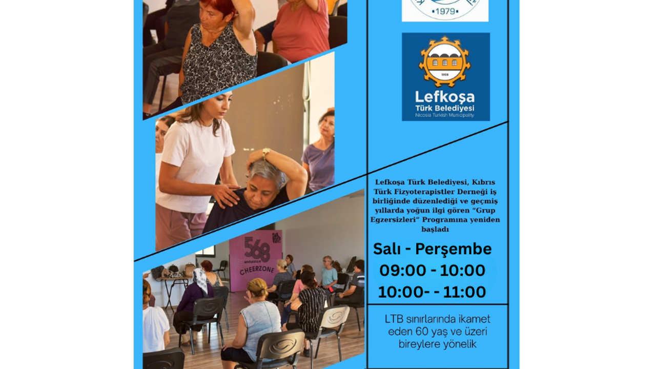 60 yaş ve üzeri bireylerin fiziksel aktivite düzeylerini artırmayı, sağlıklı yaş alma süreçlerini desteklemeyi ve sosyal etkileşimlerini güçlendirmeyi hedefleyen proje kapsamında, Merkez Lefkoşa'da haftanın iki günü uzman fizyoterapistler eşliğinde grup egzersizleri düzenlenecek.