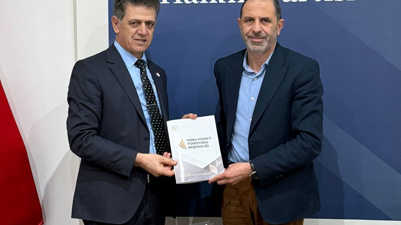 Kamu Hizmeti Komisyonu (KHK) Başkanı Ömer Köseoğlu, Halkın Partisi (HP) Genel Başkanı Kudret Özersay'ı ziyaret ederek komisyonun çalışmaları hakkında bilgi verip, 2025 faaliyet raporunu sundu. Görüşmede HP Lefkoşa İlçe Başkanı ve kamu uzmanı olan Mustafa Kendir de hazır bulundu.
