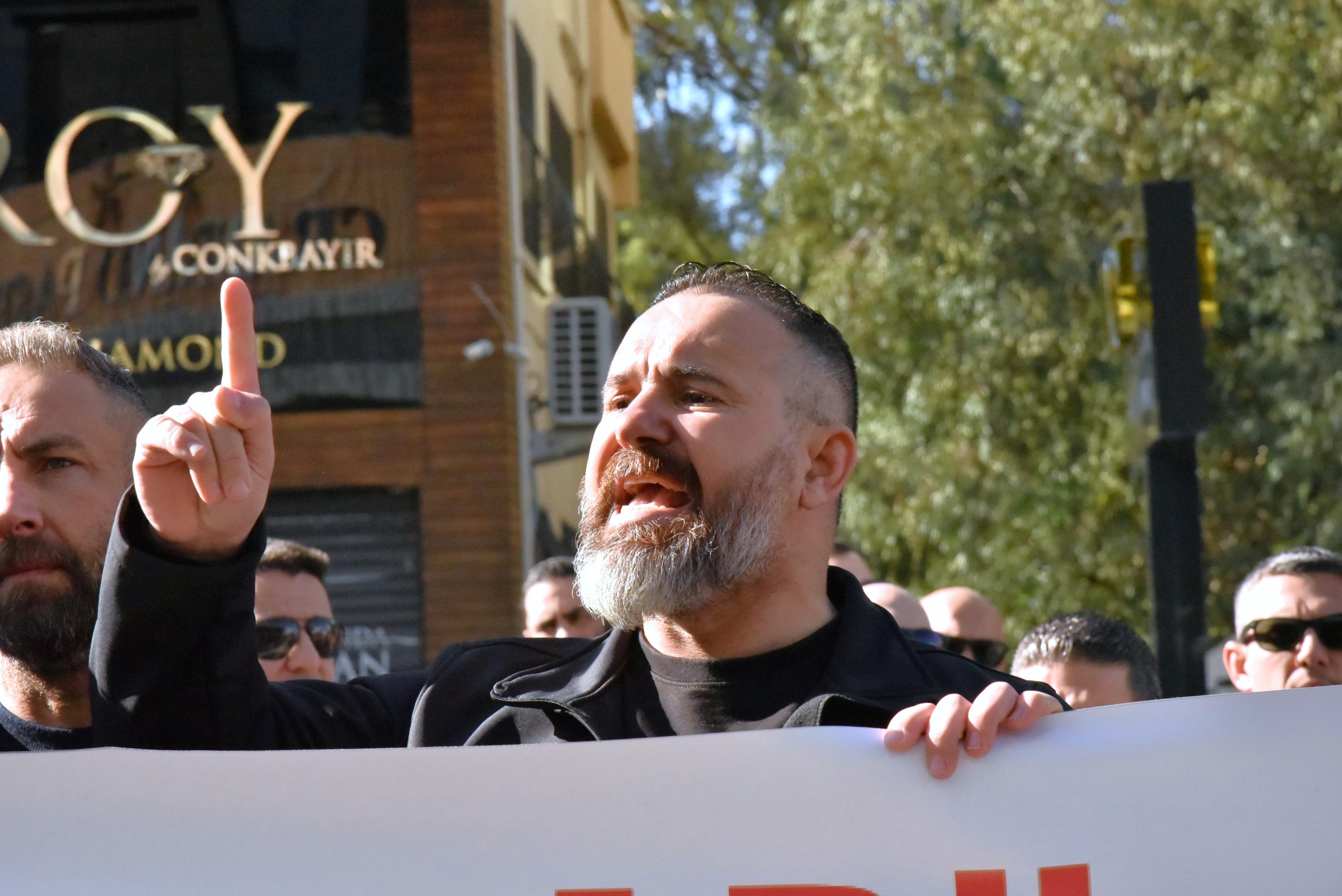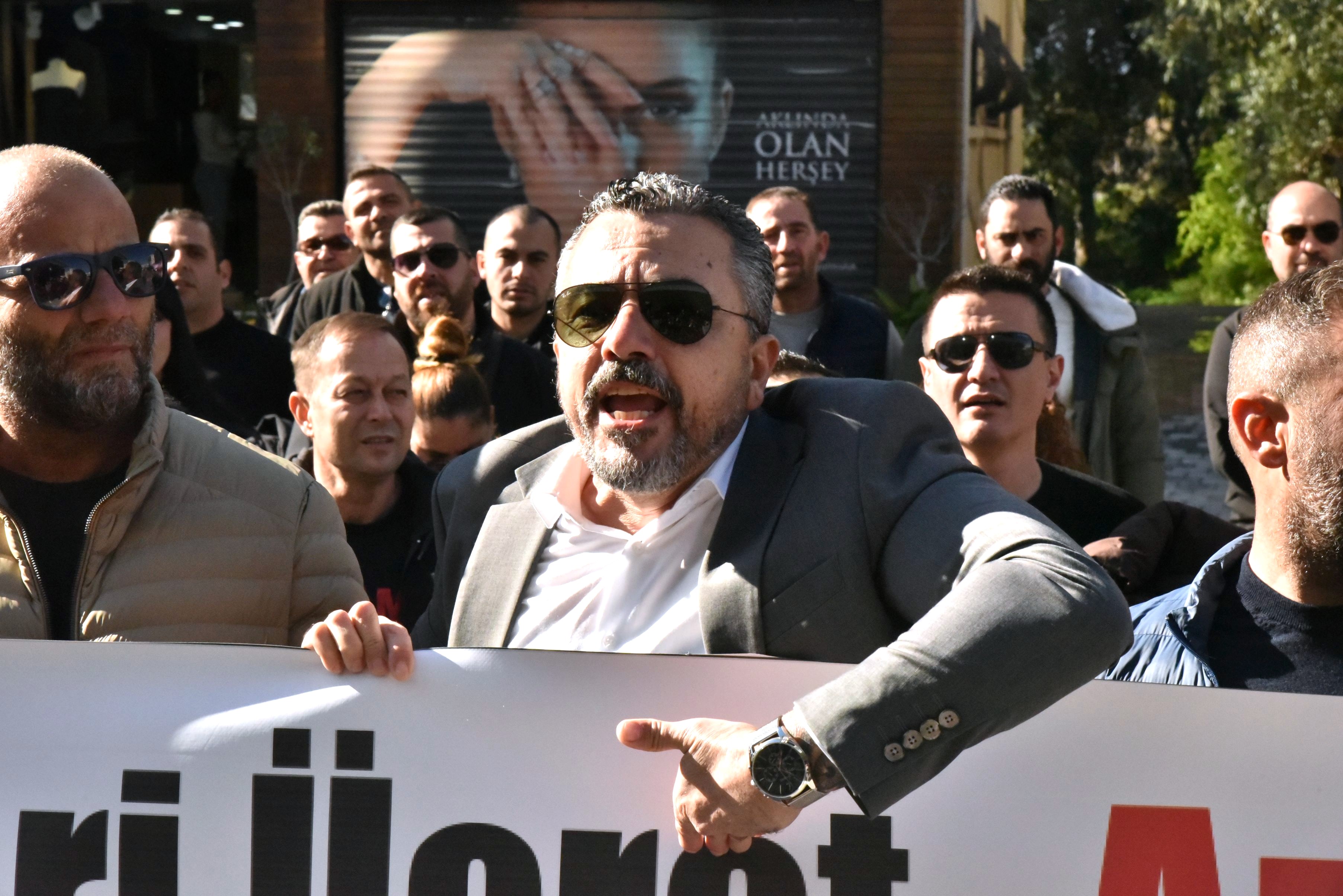 Başbakan Ünal Üstel'in düzenleyeceği basın toplantısına katılmak üzere otele gelen bakanlar, milletvekilleri ve belediye başkanlarına da sloganlarla tepki gösteren sendika başkanları, ülkede eğitim, sağlık, ekonomi ve enerji gibi alanlarda yaşandığını ileri sürdükleri usulsüzlük, yolsuzluk ve rüşvet iddialarının basın toplantısında açıklanmasını istedi.