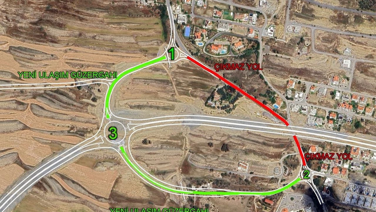 Açıklamada ayrıca, Gönyeli-Boğaz Yolu üzerinden bağlantının, yeni yapılmış olan ve krokide yeşil işaretlenmiş güzergahtan 1, 2 ve 3 numaralı kavşaklardan sağlanacağı kaydedildi.