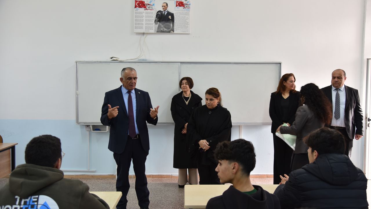 Milli Eğitim Bakanı Nazım Çavuşoğlu da Gazimağusa'daki Dr. Fazıl Küçük Endüstri Meslek Lisesi'ndeki karne dağıtım törenine katılarak öğrencilerin heyecanını paylaştı.