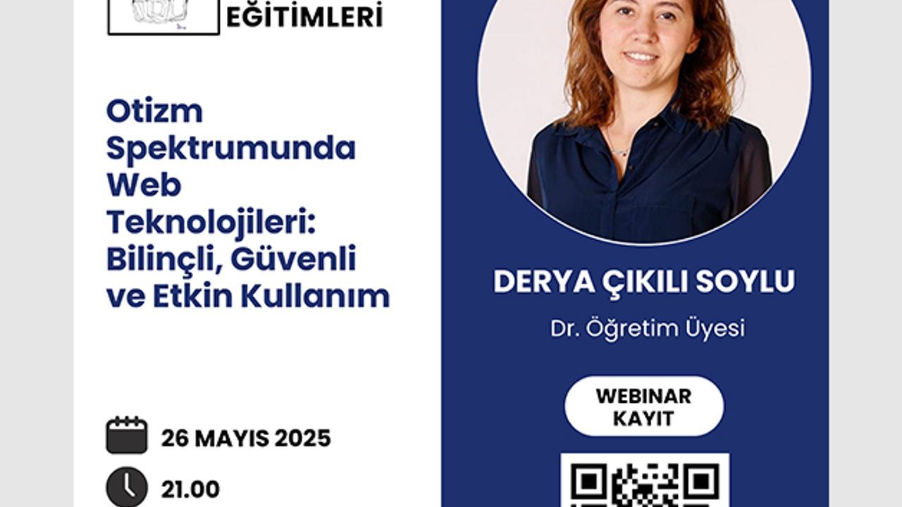 Bu doğrultuda düzenlenen webinarda, Dr. Derya Çıkılı Soylu katılımcılara web teknolojilerinin otizmli bireyler için nasıl güvenli ve faydalı hale getirilebileceğine dair kapsamlı bilgiler sunacak.