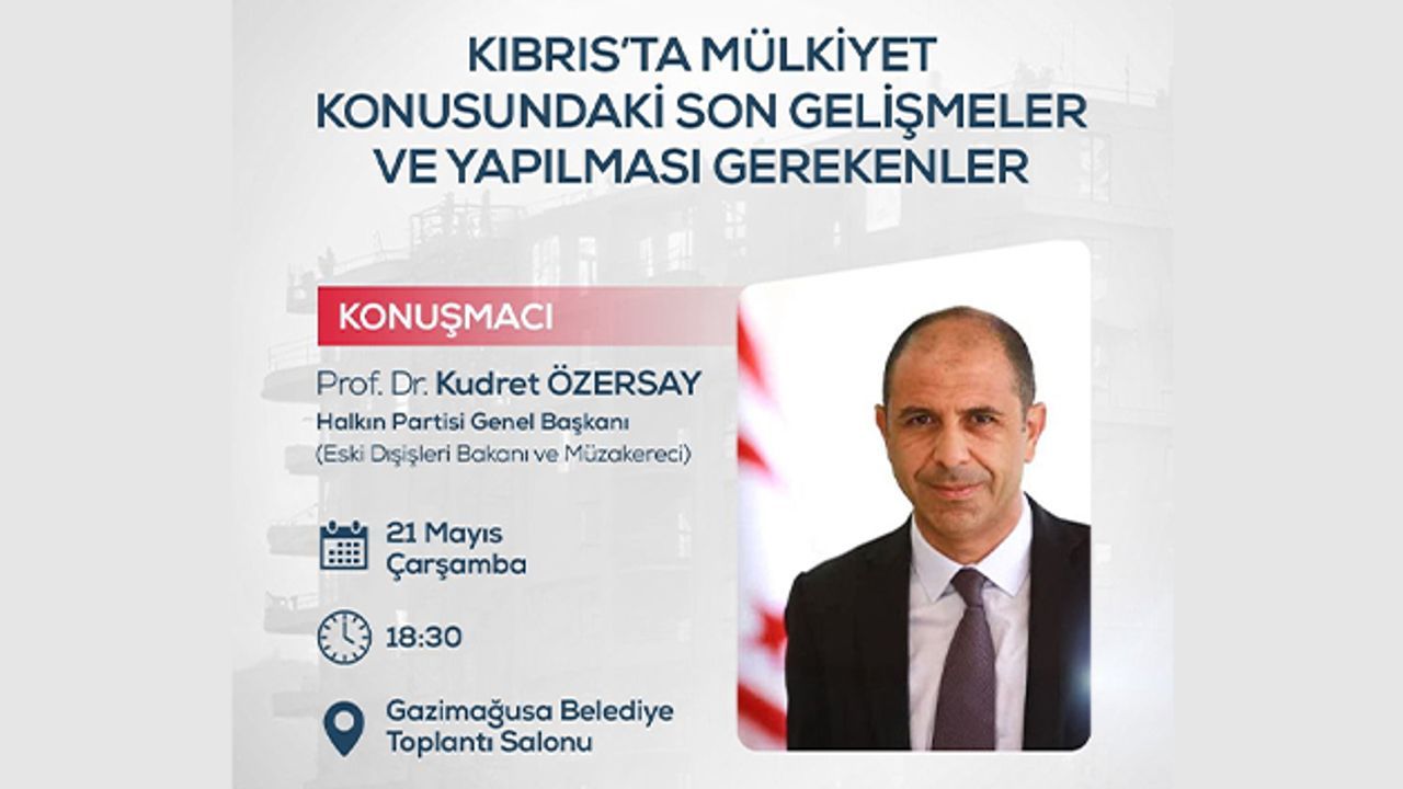 Halkın Partisi (HP) Genel Başkanı Kudret Özersay, Kıbrıs’ta mülkiyet konusunda yaşanan son gelişmeleri ve çözüm yollarını tartışmak üzere bugün bir konferans düzenleyecek.