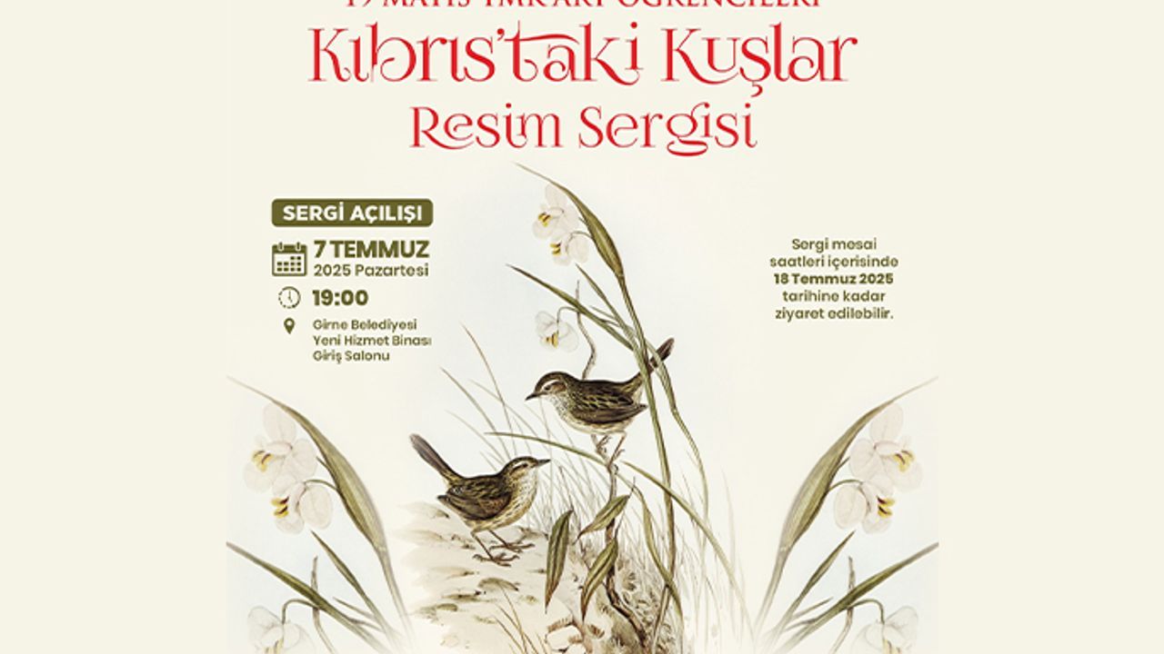 Doğaya ve biyolojik çeşitliliğe dikkat çekmeyi amaçlayan sergide, öğrencilerin Kıbrıs’a özgü kuş türlerinden ilham alarak hazırladığı eserler yer alacak. Sergi, 18 Temmuz’a kadar mesai saatleri içinde ücretsiz olarak ziyaret edilebilecek.