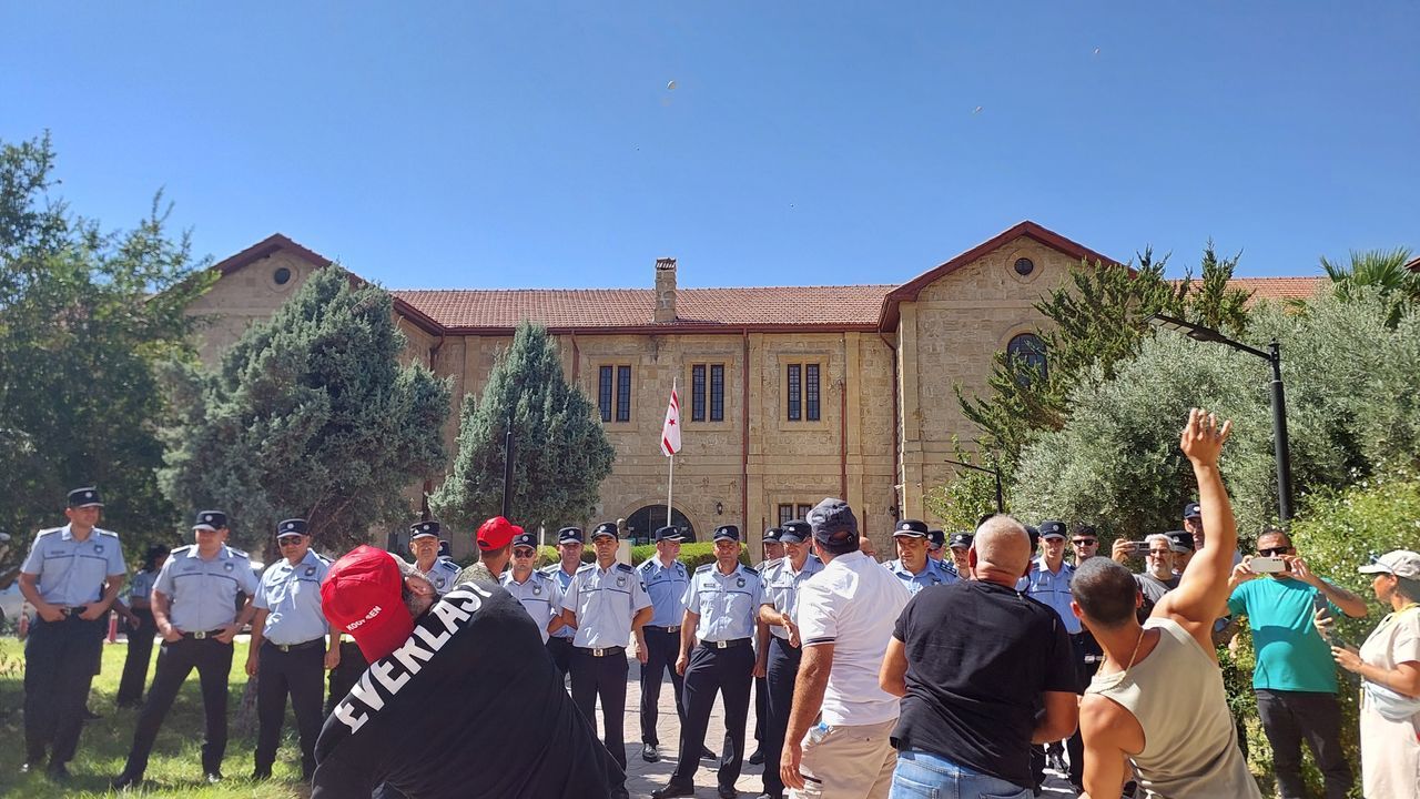 Bakanlık binasına yumurta atıp, bahçeye hellim suyu döken eylemcilerin "Birlik, Mücadele, Dayanışma” ve “Yılgınlık Yok, Direniş Var” sloganları attığı eyleme bazı sendika yetkilileri de katılarak, destek belirtti.