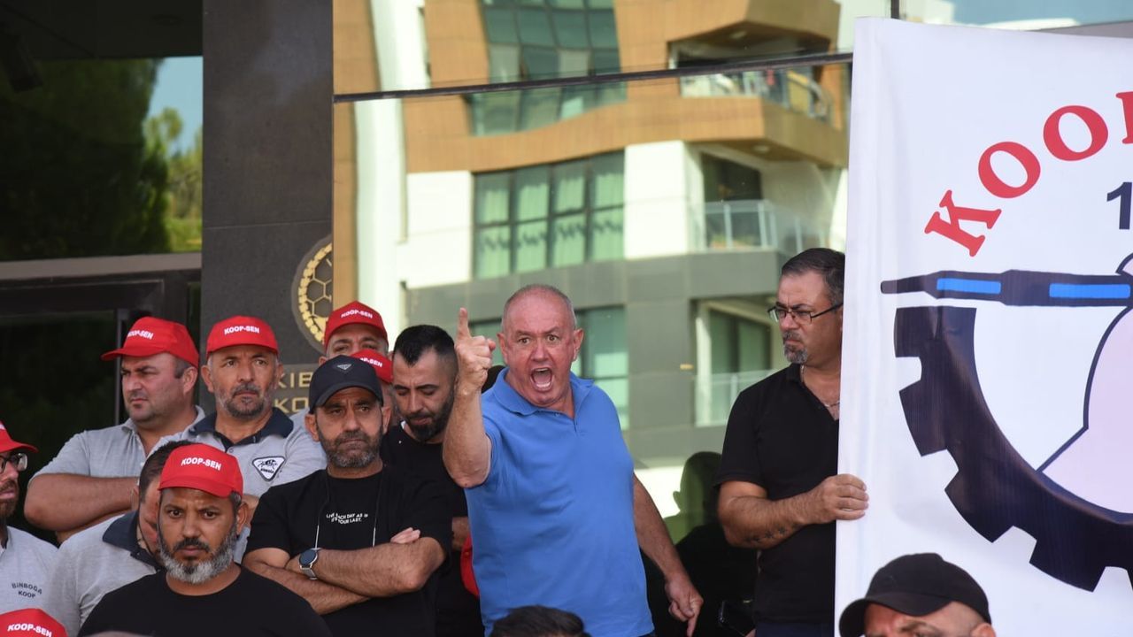 KOOP-SEN Başkanı Mehmet Ali Güröz konuşmasında, üç iştirakte 12 gündür çalışanların maaşlarının ödenmediğini belirterek, “Emekçi açlığa terk edildi” dedi. Hükümetin bu duruma kayıtsız kaldığını savunan Güröz, yapılan görüşmelerden sonuç alınmadığını ifade etti.