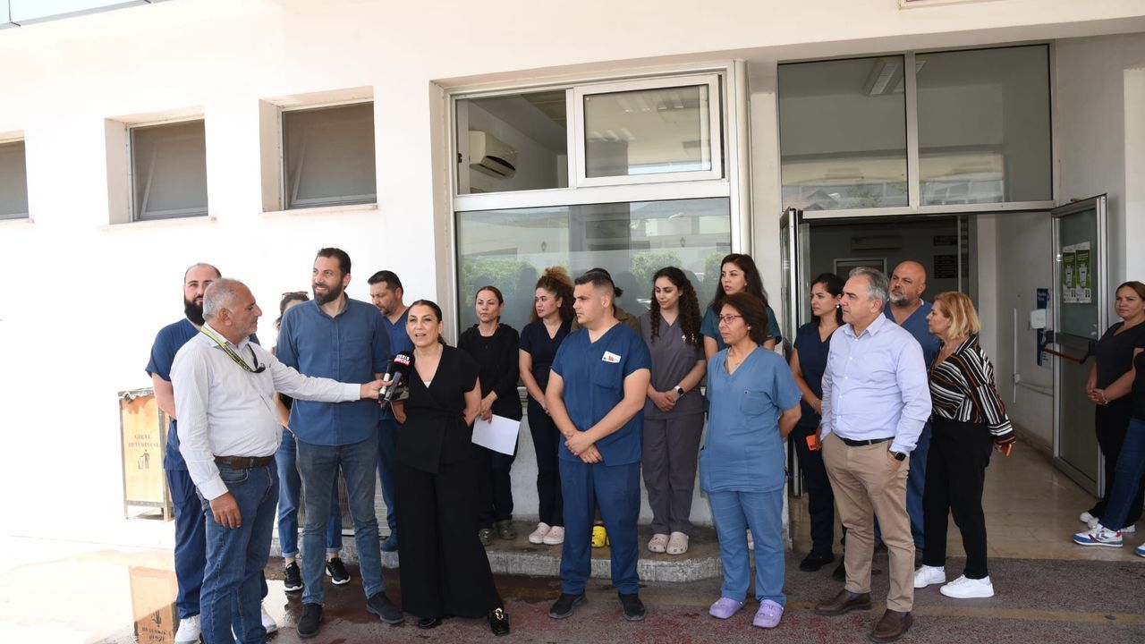Kıbrıs Türk Hemşireler ve Ebeler Sendikası (KTHES) ve Kıbrıs Türk Hekimler Sendikası (Tıp-İş), Girne Akçiçek Hastanesi'nde "bir sağlık çalışanına yönelik şiddet olayı ve sağlık alanında son zamanlarda ortaya çıkan sorunlarla" ilgili hastane önünde basın açıklaması yaptı.