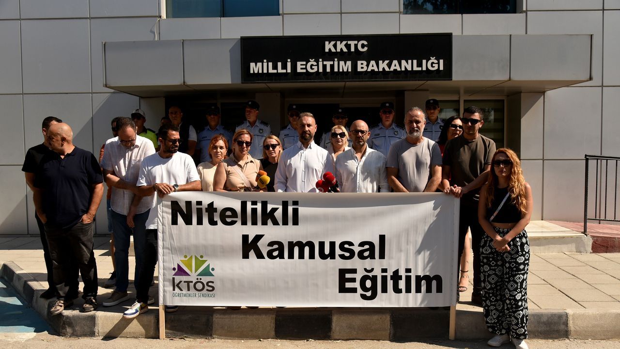 Kıbrıs Türk Öğretmenler Sendikası (KTÖS), Milli Eğitim Bakanlığı önünde eylem yaparak, yei eğitim yılı başlamadan eğitim kadroları ile okulların eksikliklerinin tamamlanmasını istedi. KTÖS, “Nitelikli kamusal eğitim” yazılı pankart açtığı eylemde, rehberlik, özel eğitim ve öğretmen yardımcısı kadrolarına yönelik “sistematik ihmal ve keyfi kadro politikaları” uygulandığı eleştirisinde bulundu. Eylemde konuşan KTÖS Genel Sekreteri Burak Maviş, okulların öğrenciler için sadece eğitim değil, sosyalleşme açısından da çok önemli olduğunu kaydetti. Okullarda eşitsizlik olduğunu söyleyen Maviş, çocukların beslenme konusunda da eşitsizlik olduğunu işaret etti. Ailelerin omuzlarındaki yükün yeni dönemde daha da artabileceği endişesi taşıdıklarını ifade eden Maviş, bir başka hak ihlalinin de okul altyapılarında olduğuna söyledi. Maviş, bazı okullardaki konteynır sınıflarda eğitimin yeni eğitim yılında ortadan kaldırılması temennisinde bulundu. Maviş, okul ihalelerinin tamamlanmaması halinde okulların yüzde 20’sinin yeni eğitim yılına şantiye olarak açılacağına işaret etti. Maviş, sınıflardaki öğrenci sayılarına da işaret ederek, bir çok okulda sınıfların yetersiz olduğuna savundu. Yeni okullar, iyileştirmeler, öğretmen ve altyapı taleplerini de dile getiren Maviş, okullarda ihtiyaç duyulan öğretmen kadrolarının da tamamlanması gerektiğini belirtti. Okulların yüzde 70’inde zorbalık olduğunu ifade eden Maviş, bu konuda atılması gereken adımlar ve öğretmenlerin bu konudaki yetersizliğine işaret etti. Çocuk suçları, çocuk hakları ve çocuk hakları ihlalleriyle ilgili raporlardan örnekler veren Maviş, aileler, çocuklar ve öğretmenlerin yaşadığı sıkıntılara değindi. Maviş, okullara kaynak yaratılmaması ve alt yapıya önem verilmemesinden ötürü çocukların devletten özel okullara yönlendirildiğini ve bugün büyük bir çoğunluğun "okulsuzlaştırıldığını" iddia etti. Milli Eğitim Bakanlığına, altyapıya ve öğretmenlere önem verme; atama ve istihdamları tamamlama çağrısı yapan Maviş, eğitimde tasarruf değil yatırım istediklerini vurguladı. “Eğitime yatırım geleceğe yatırımdır” diyen Maviş, tüm yetkililere, siyasi atamalar yerine eğitime ve okullara değer vermesini istedi. Ülkedeki, okullardaki ve eğitimdeki sıkıntılara işaret eden Maviş, kamusal eğitime önem verilmesini talep etti. Maviş, öğretmen yardımcıları ve rehber öğretmenleri atamalarının tamamlamasını gereğine işaret ederek, Milli Eğitim Bakanına, eğitimdeki kadroları Eylül’e kadar hazırlama çağrısı yaptı.