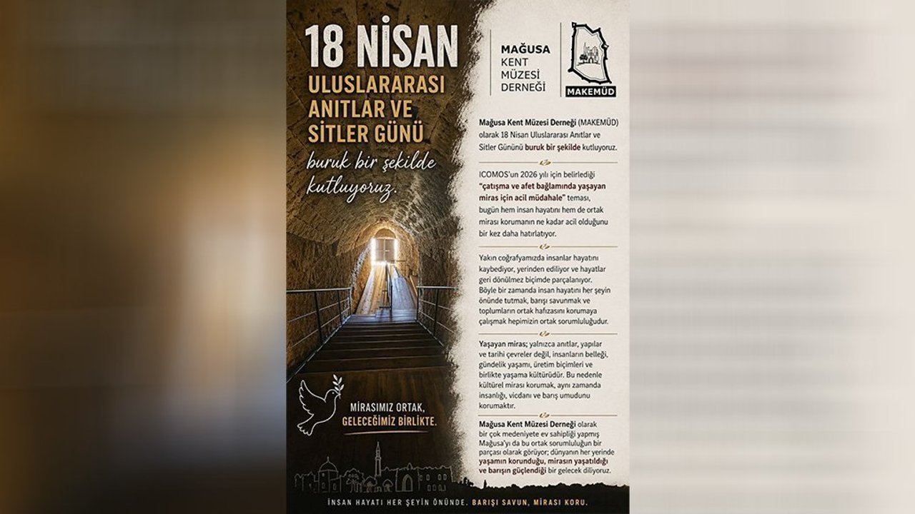 'Kültürel mirası korumak, aynı zamanda insanlığı, vicdanı ve barış umudunu korumaktır. Mağusa Kent Müzesi Derneği olarak birçok medeniyete ev sahipliği yapmış Mağusa'yı da bu ortak sorumluluğun bir parçası olarak görüyor; dünyanın her yerinde yaşamın korunduğu, mirasın yaşatıldığı ve barışın güçlendiği bir gelecek diliyoruz.'