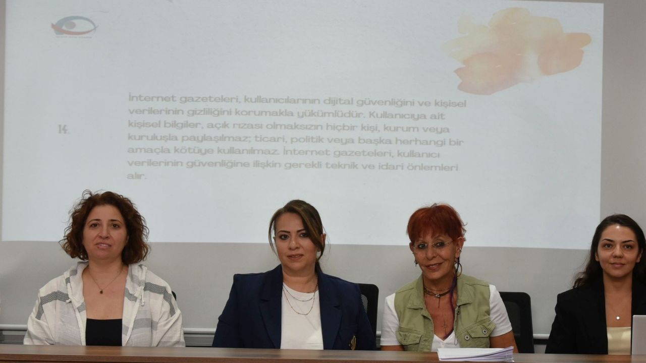 Kıbrıs Türk Gazeteciler Birliği Lokali’nde düzenlenen basın toplantısında Medya Etik Kurulu Başkanı Aysu Basri Akter sonuçları açıklayıp, değerlendirmelerde bulundu. Medya Etik Kurulu üyelerinin de hazır bulunduğu basın toplantısına, Kıbrıs Türk Gazeteciler Birliği Başkanı Efdal Keser, BRT Müdürü Meryem Çavuşoğlu, medya kuruluşlarının temsilcileri ile gazeteciler de katıldı.